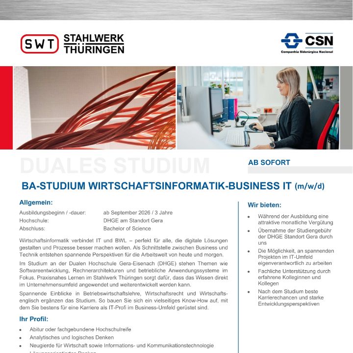 Die folgenden Praxispartner suchen Studierende für ein duales Studium.
